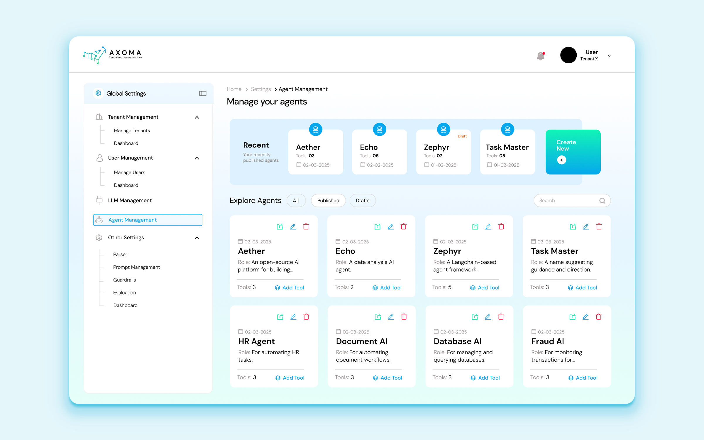 Solution: Build intelligent agents without code using RAG, OAuth-secured tools, and flexible configuration.