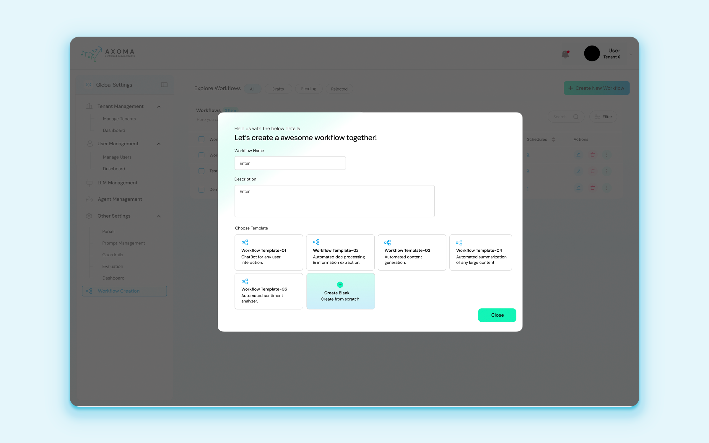 Solution: Drag-and-drop workflow design with AI actions, third-party integrations, and human-in-the-loop approvals.